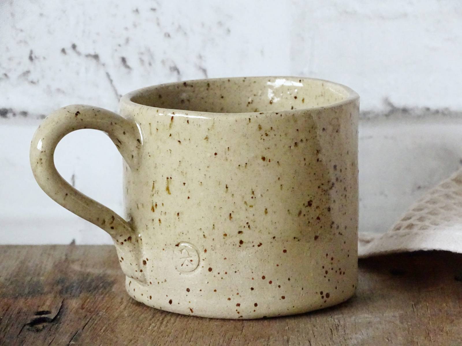 Prikupna minimalistična glinena skodelica (bež odtenki) z ročajem, ravno pravšnja za kavo ali čaj je ročno izdelana iz visokokakovostne gline, ki je naravni material, sestavljen iz delcev mineralov, peska, ilovice in drugih komponent. Skodelica ima glazirano notranjost in delno zunanjost. Glinena skodelica je primerna za pitje toplih in hladnih napitkov, kadar pa ni v tovrstni rabi, lahko služi kot domiselna vazica za šopek svežega cvetja.